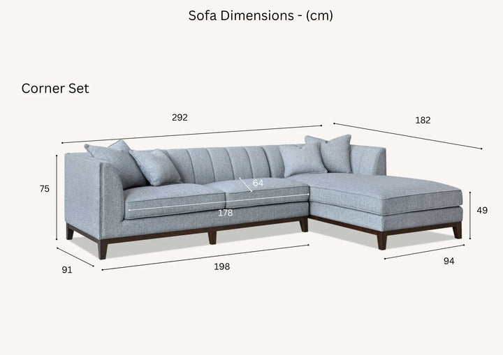 Upholstered in a gorgeous tight weave Boucle fabric offering a hardwearing yet smooth finish to the sofa and available in a right hand corner (as pictured), left hand corner or 3 seater sofa there are multiple options for making the Cooper a stylish centrepiece to your interior.