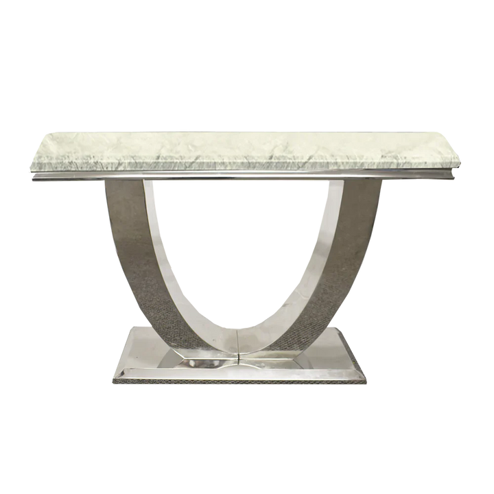 Ultra chic and glamorous, the Arial Console Table redefines high end living. Comprising of a beautiful marble or glass top which is complemented with a polished stainless steel swooping base.